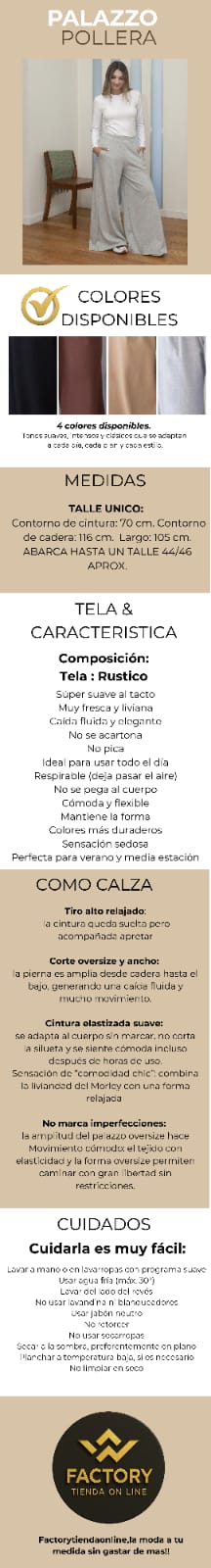 V/ PALAZO POLLERA RÚSTICO: comodidad y estilo en un solo palazo.